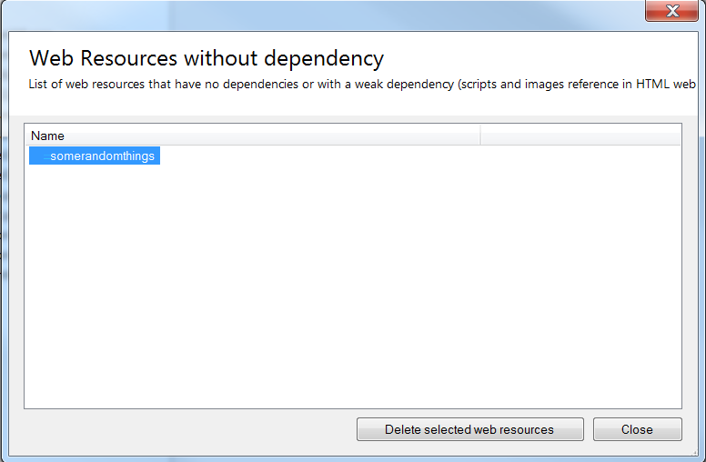 This feature will list up the web resources without dependency (orphan record that uploaded but no longer used)