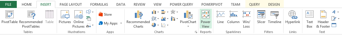 Now the data is ready to be used in Map control in PowerView. To create the PowerView, navigate to Insert > Reports > PowerView in Excel ribbon bar.