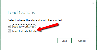 Once loaded, we need to do some Power Pivot exercise to prepare the data model and manage the address fields to be recognised as address related data by right-clicking the Query click on Load to…. Choose both worksheet and Data Model