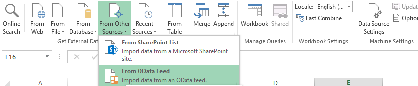 Selects Power Query Tab, select the data source From Other Sources > From OData Feed.