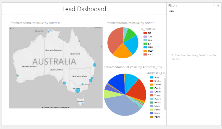 And then add a couple CRM charts and views to completely assemble a simple Lead Dashboard in CRM that integrated with Power BI: