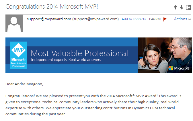 Setting up Dynamics CRM with other Microsoft stacks on the cloud (Friends), is so much easier than deploying each individual components On-Premise. This whole example setup can be completed in a small number of hours to setup, where if these setup took place On-Premise it could take a couple of days of effort to setup. A big thanks to Microsoft cloud services, especially the CRM Online and Office365 team to keep improving the experience in their cloud services provisioning.