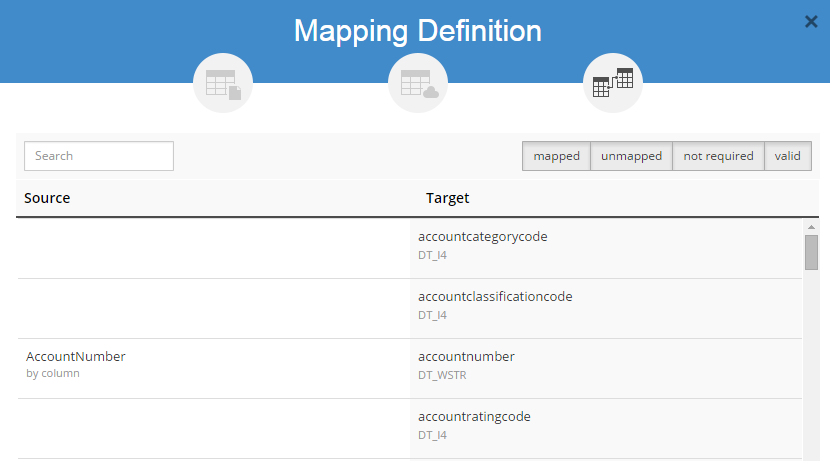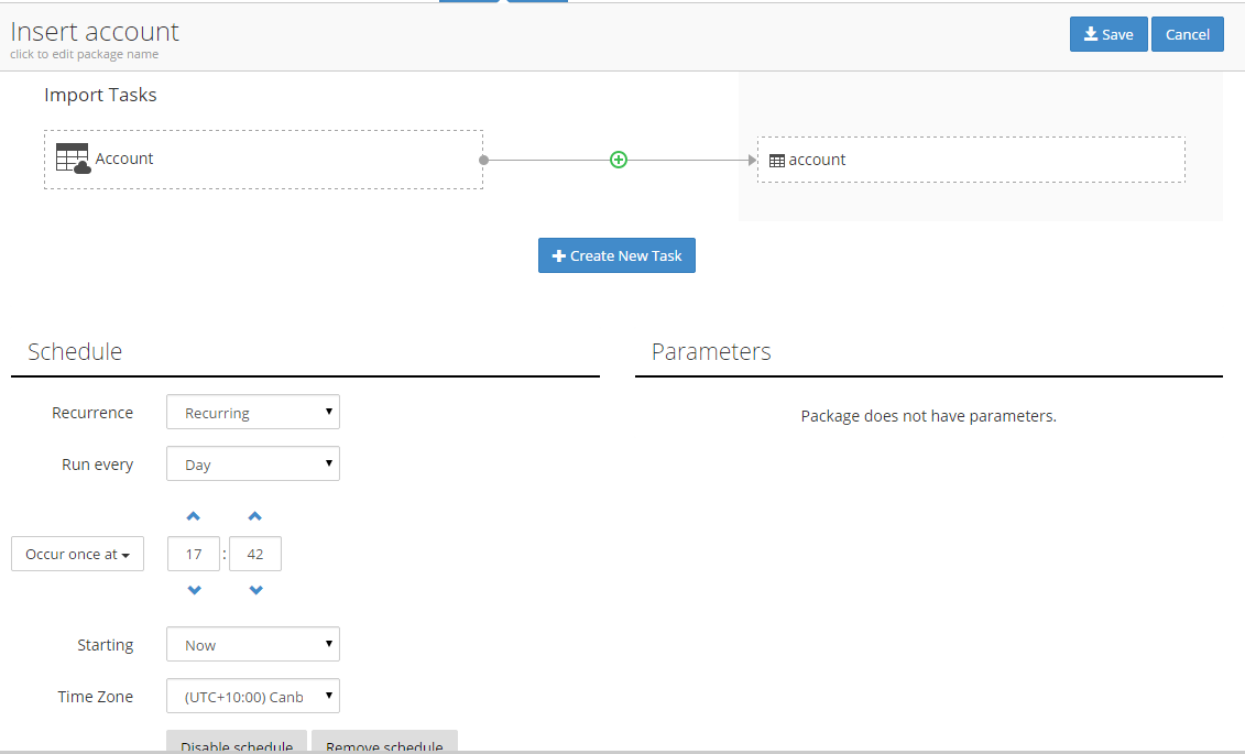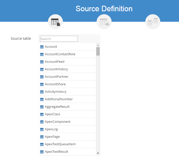 Then click on “Create New Task” button to configure the process. It will open up the configuration “Wizard” that will go through the source and target component mapping as the following screenshots. For sample purpose, I tried with Account object (entity):