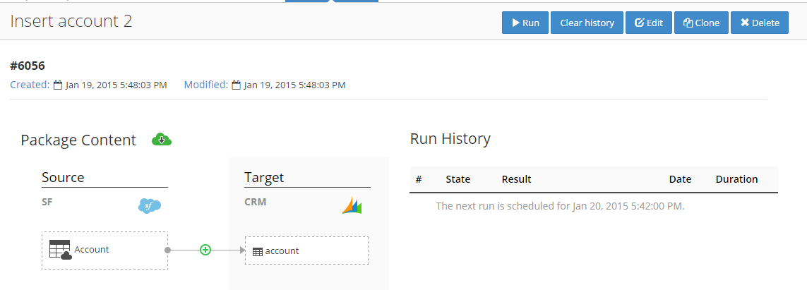 Once the process kicks in or executed manually by clicking “Run” button, it will log the process under Run History table