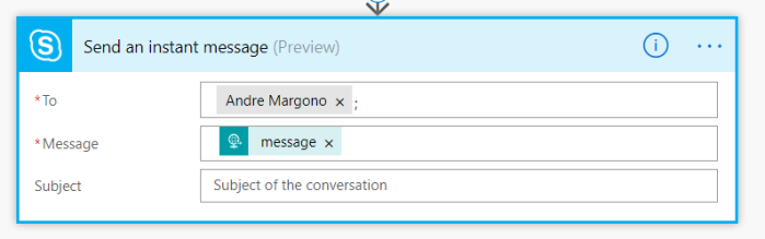 In my sample, I’m going to add the Skype for Business action: Send Instant Message