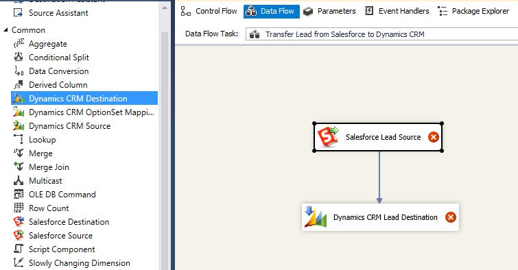 And create a simple SSIS process as follow: