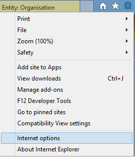 To enable this, click the “Gear” symbol on IE > Click on Internet Options