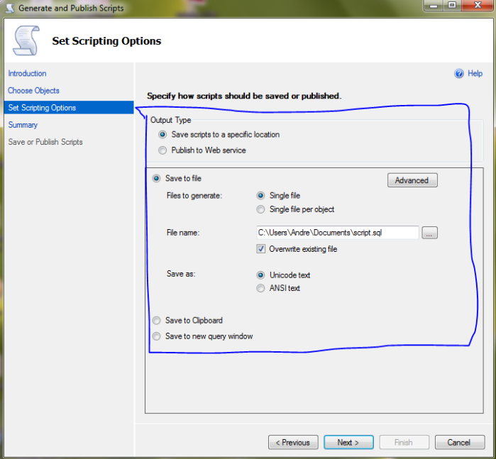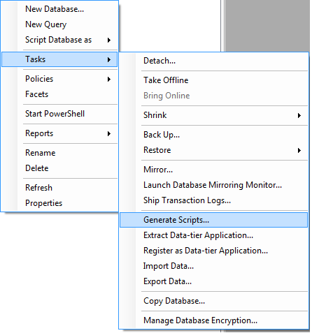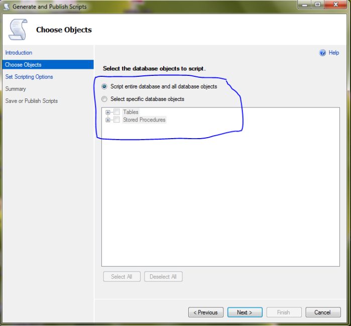 3. We also can specify the script for whole database or even to specific tables/stored procedures
